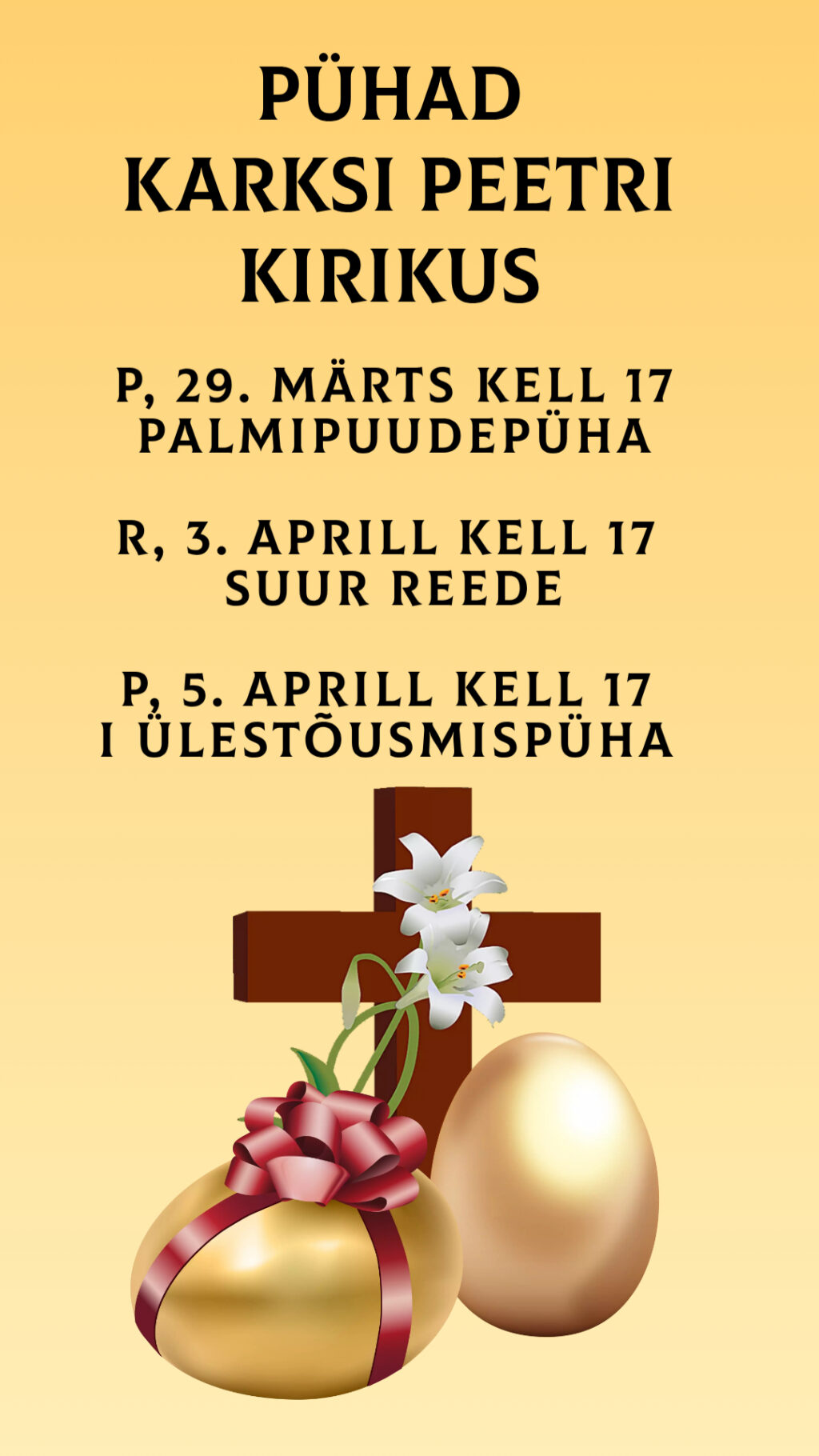 P, 29. märts kell 17 PALMIPUUDEPÜHA ARMULAUAGA JUMALATEENISTUS